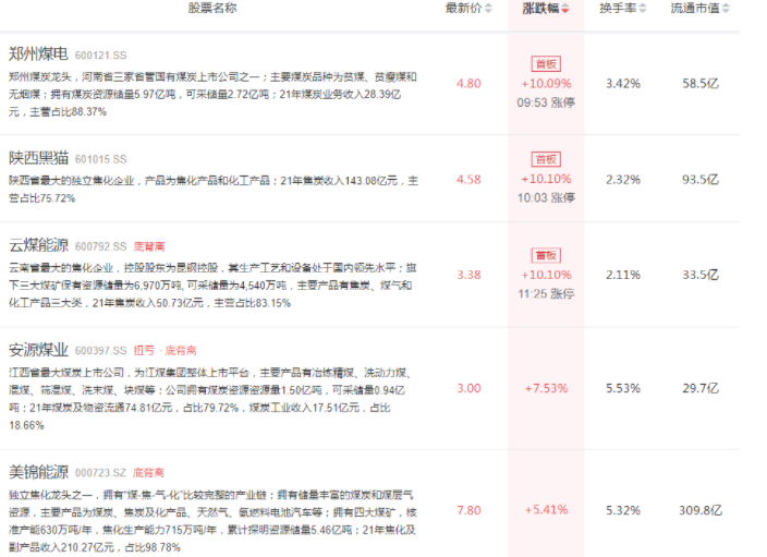 受此影响,国内多地电力需求大增,火电板块前几日连续走强,而其主要原料煤炭今日也受到带动领涨两市,郑州煤电、陕西黑猫、云煤能源等涨停。