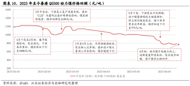 3月起,煤炭市场进入淡季,大量进口煤持续冲击国内市场,叠加冬季供暖结束,煤价缓慢下行,动力煤库存在5月下旬累至近年高位,行业基本面偏弱运行,价格持续下行至775元/吨。