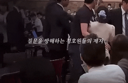 “探查”记者继续追上前,但被保镖拦下。她随后对着镜头质问韩国媒体为何不行使媒体权利,“你们不是有提问机会吗?(刚刚)为什么不问(受贿问题)呢?”