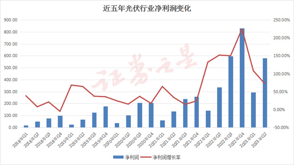 从上半年净利润增速来看,逆变器(+271%)>光伏电池组件(+116%)>光伏加工设备(+34%)>光伏辅材(+6%)>硅料硅片(-10%),从 23Q2 净利润同比增速来看,逆变器(+282%)>光伏电池组件(+98%)>光伏加工设备(+33%)>光伏辅材(-6%)>硅料硅片(-35%)。其中硅料硅片板块负增长主要系产品价格从周期高点回落,即便出货量增长,但产品价格快速下降,难以以量补价,叠加高基数影响,利润水平同比负增长。