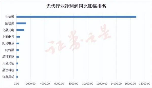 光伏行业净利润同比涨幅排名前十的公司有:中信博、固德威、亿晶光电、上能电气、阳光电源、阿特斯、晶科能源、天合光能、晶澳科技、协鑫集成。