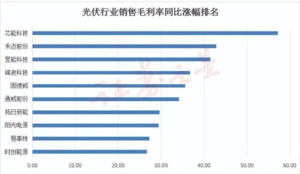 光伏行业销售毛利率排名靠前的公司有:芯能科技、禾迈股份、昱能科技、锦浪科技、固德威、通威股份、拓日新能、阳光电源、易事特、时创能源。